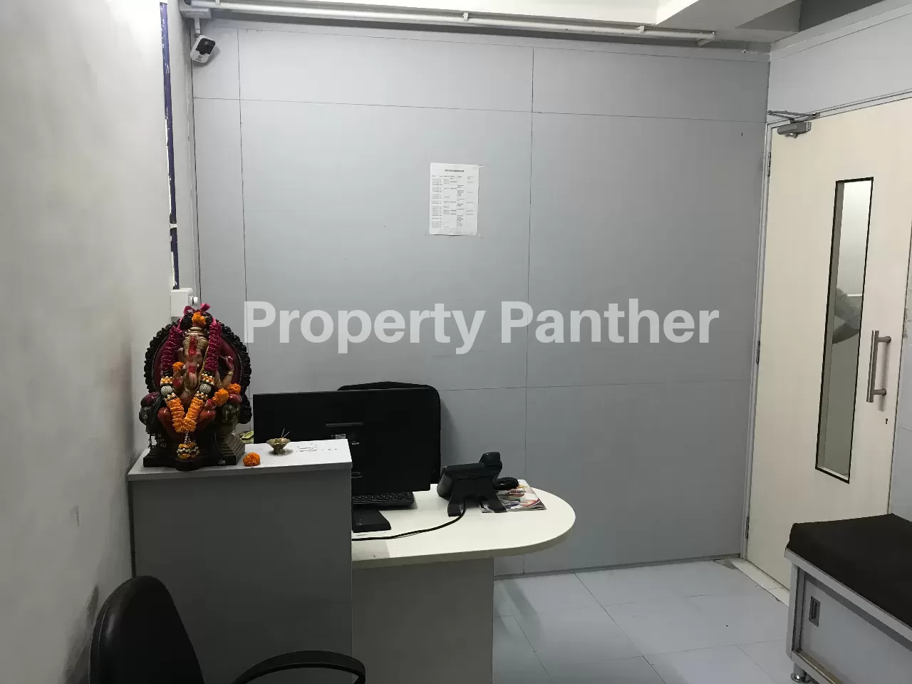 - Reception area with sofa and desk.